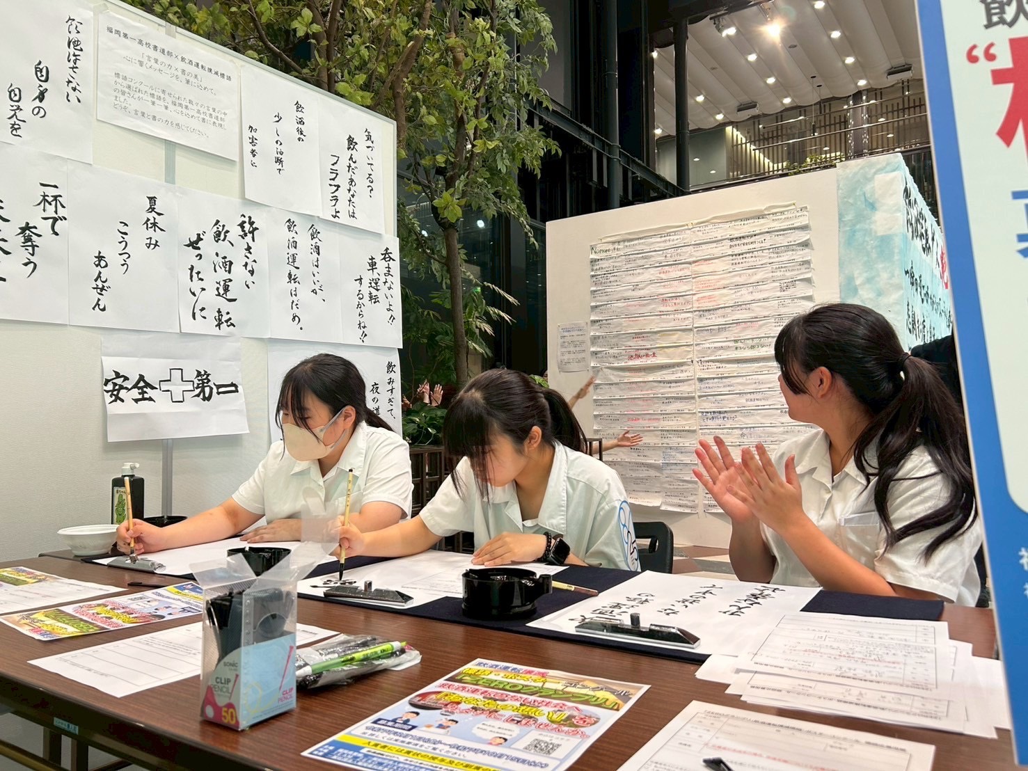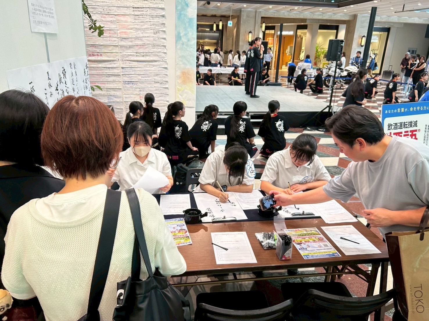 書道パフォーマンスでは、多くの方に飲酒運転はいけないと訴えかけ 標語作成では書道を身近に感じていただくことができました。