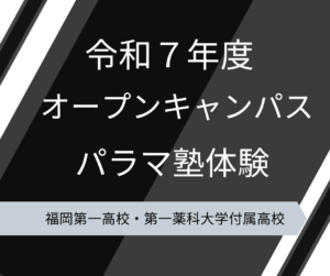パラマ塾体験のご案内について さて、今年度も「パラマ塾」をご紹介させて頂きたく 『パラマ塾体験』を11月15日(土)午前中の日程にて行います。 ご参加を教員一同、心よりお待ち申し上げます。 * 申し込み受け付けは終了しま … 続きを読む パラマ塾体験 11月15日(土)