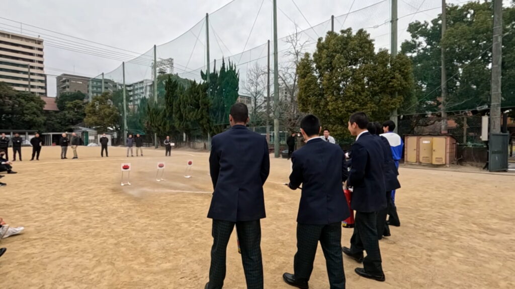 グランドまでの避難経路の確認や、消火器の使用方法(15秒・3~5m離れて正しく消火対象に向けることなど) そして、連携の大切さ(火事の周知・119番通報等を連携して行う)、そして自ら命を守る大切さを学びました。 また、避難する生徒だけではなく、 教育職員の責任感についても同時にお話しいただきました。 福岡市消防局の皆様、本日はお忙しい中お越しいただき ありがとうございました。