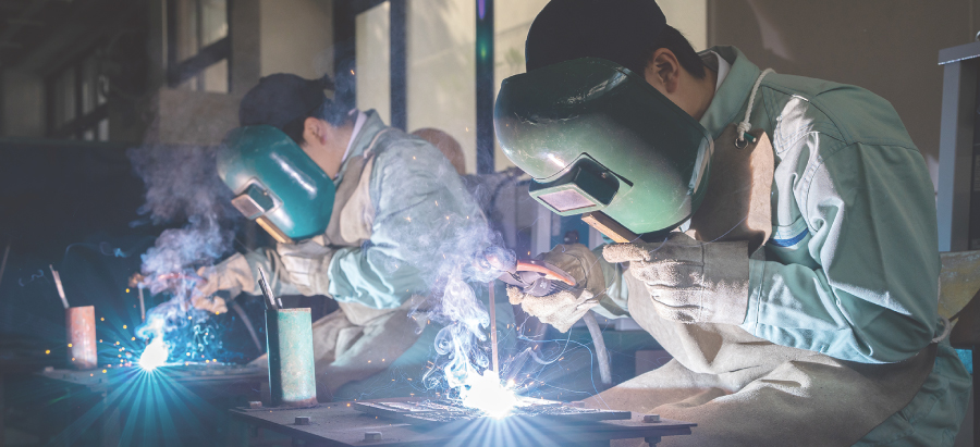 アーク溶接の基礎を学び安全点検、防御服点検などを学ぶ。実際に企業で勤められた講師の先生から実践的な実習、アーク溶接の技術指導を仰ぐ。